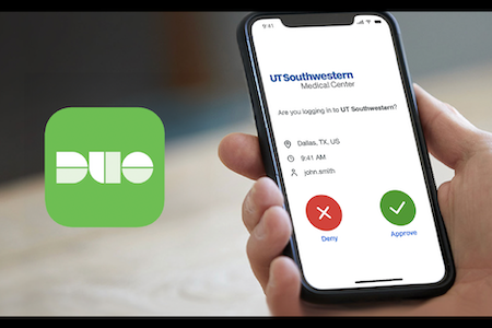 UT Southwestern uses a two-factor authentication app called DUO for remote logins to UTSW webmail, VPN, and Office 365.